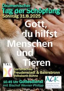 Die Arbeitsgemeinschaft Christlicher Kirchen in Baden-Württemberg feierte am Sonntag 31. August 2025 zusammen mit der ACK Freudenstadt und der ACK Baiersbronn auf der gemeinsamen Gartenschau im „Tal X“ ihren zentralen Gottesdienst zum Ökumenischen Tag der Schöpfung.Der ökumenische Gottesdienst auf der großen „Volksbank-Bühne“ began um 10.45 Uhr. Alle Mitgliedskirchen der ACK in Freudenstadt und Baiersbronn sowie die Vorsitzende der ACK in Baden-Württemberg, Heike Friedrich, waren beteiligt. Die Predigt hielt der Bischof der Evangelisch-methodistischen Kirche, Werner Philipp D.Min.